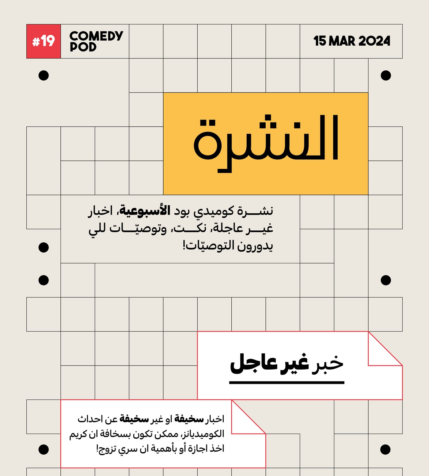 الإيقاع الكوميدي 🎶كوميدي بود14 مارس 2024نشرة النشرةأخبار غير عاجلة، نكت، وتوصيات للي يدورون التوصيات!بريدك المفضلاسمك الأول، بالعربيةتابــع