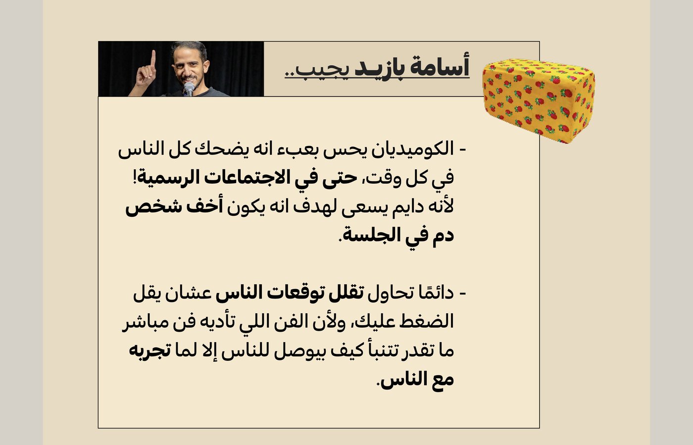 الكوميديا أنواع! 😂🤣😭كوميدي بود13 ديسمبر 2023نشرة النشرةأخبار غير عاجلة، نكت، وتوصيات للي يدورون التوصيات!بريدك المفضلاسمك الأول، بالعربيةتابــع